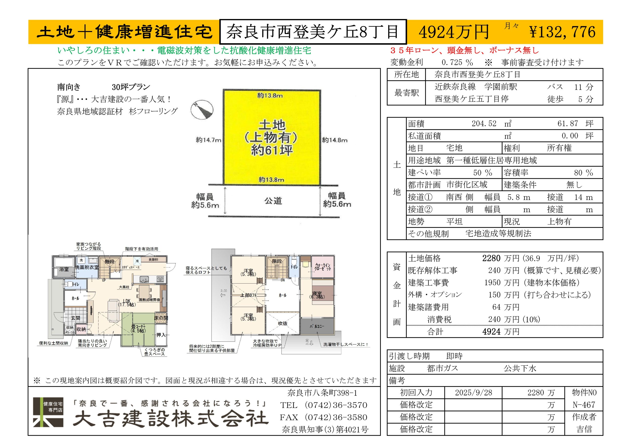 奈良市西登美ケ丘8丁目の土地物件No.N-467