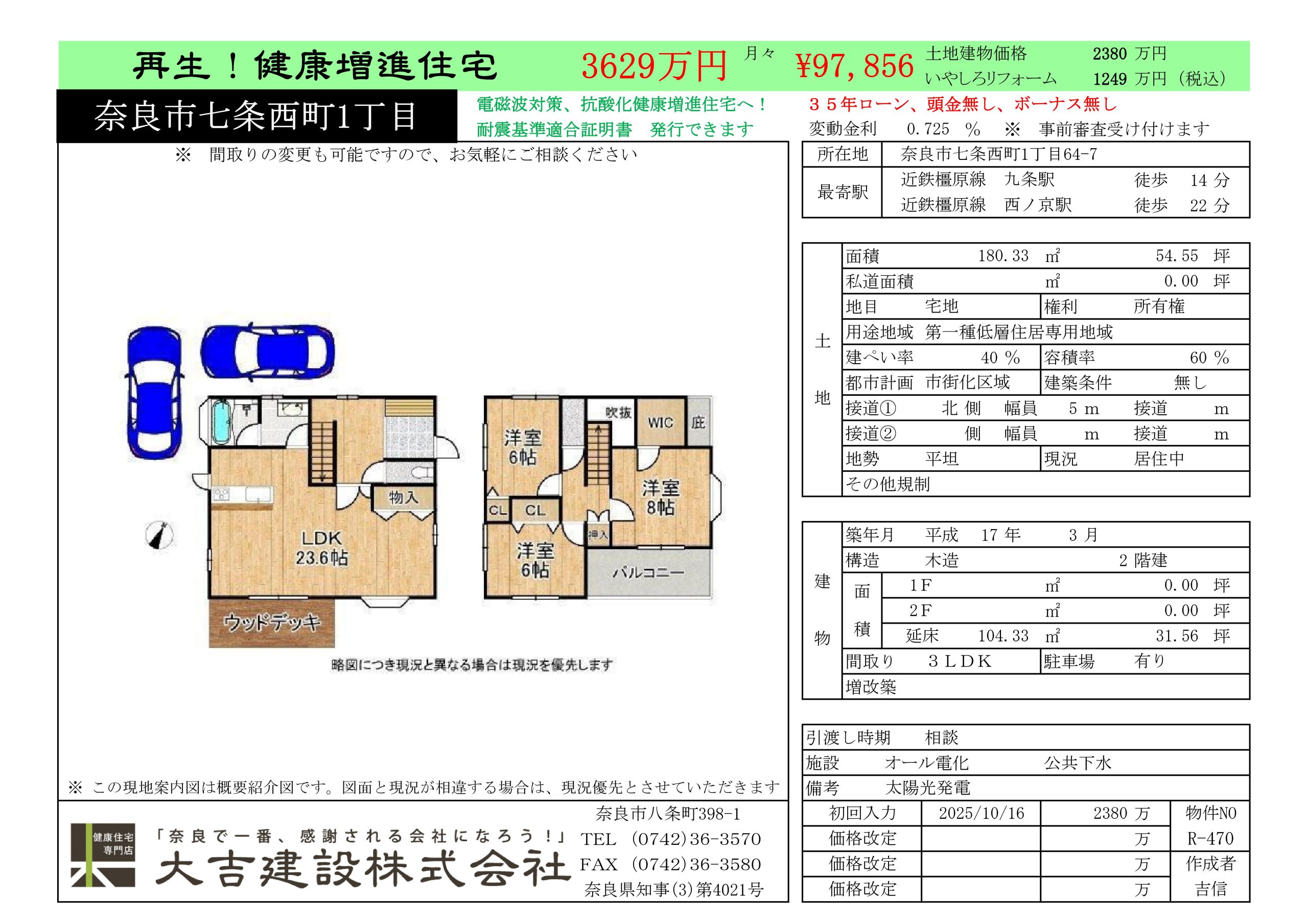奈良市七条西町1丁目の中古住宅物件No.R-470