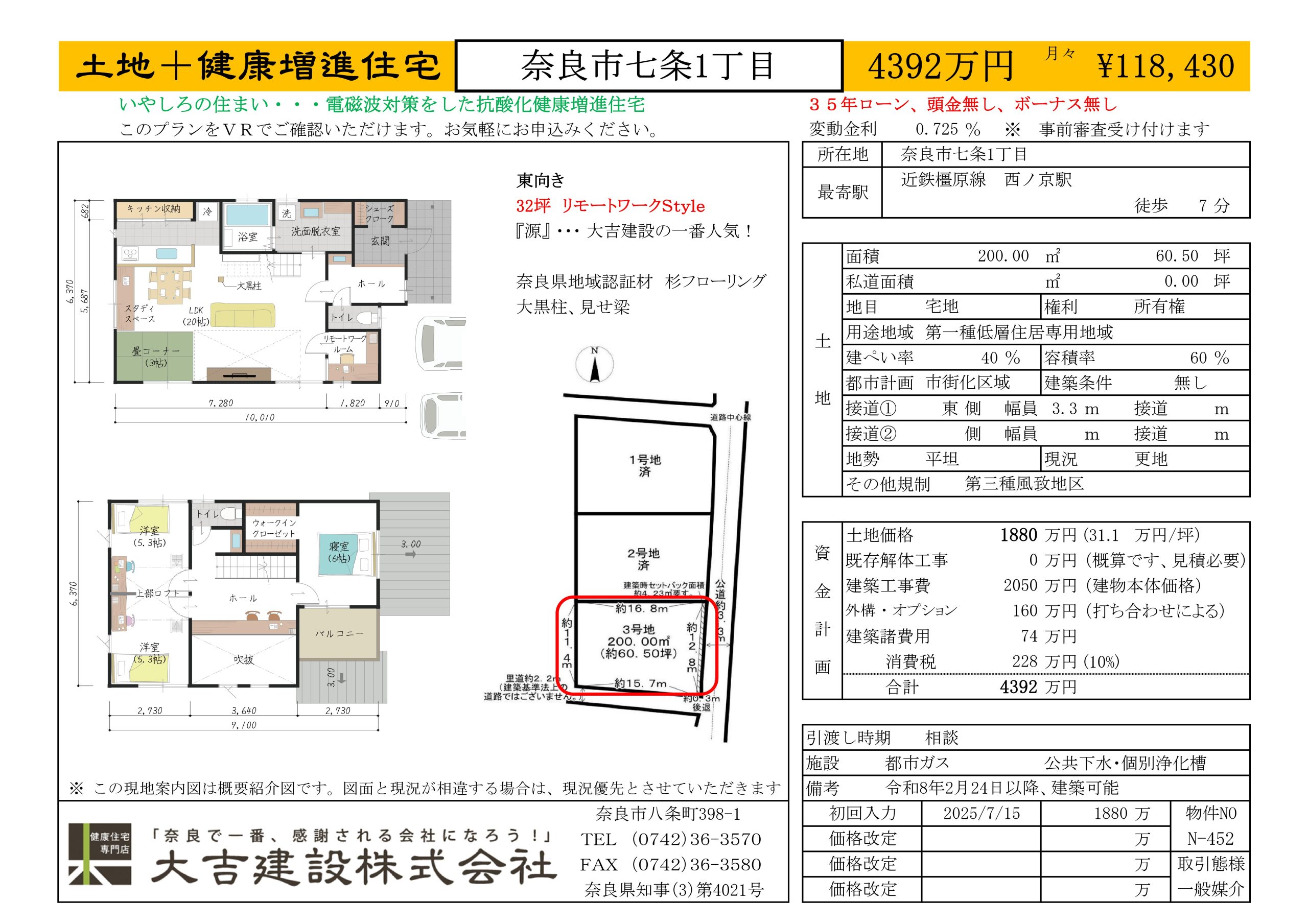 | 土地面積 | 200.00㎡ 60.50坪 | 土地価格 | 1880万円 |