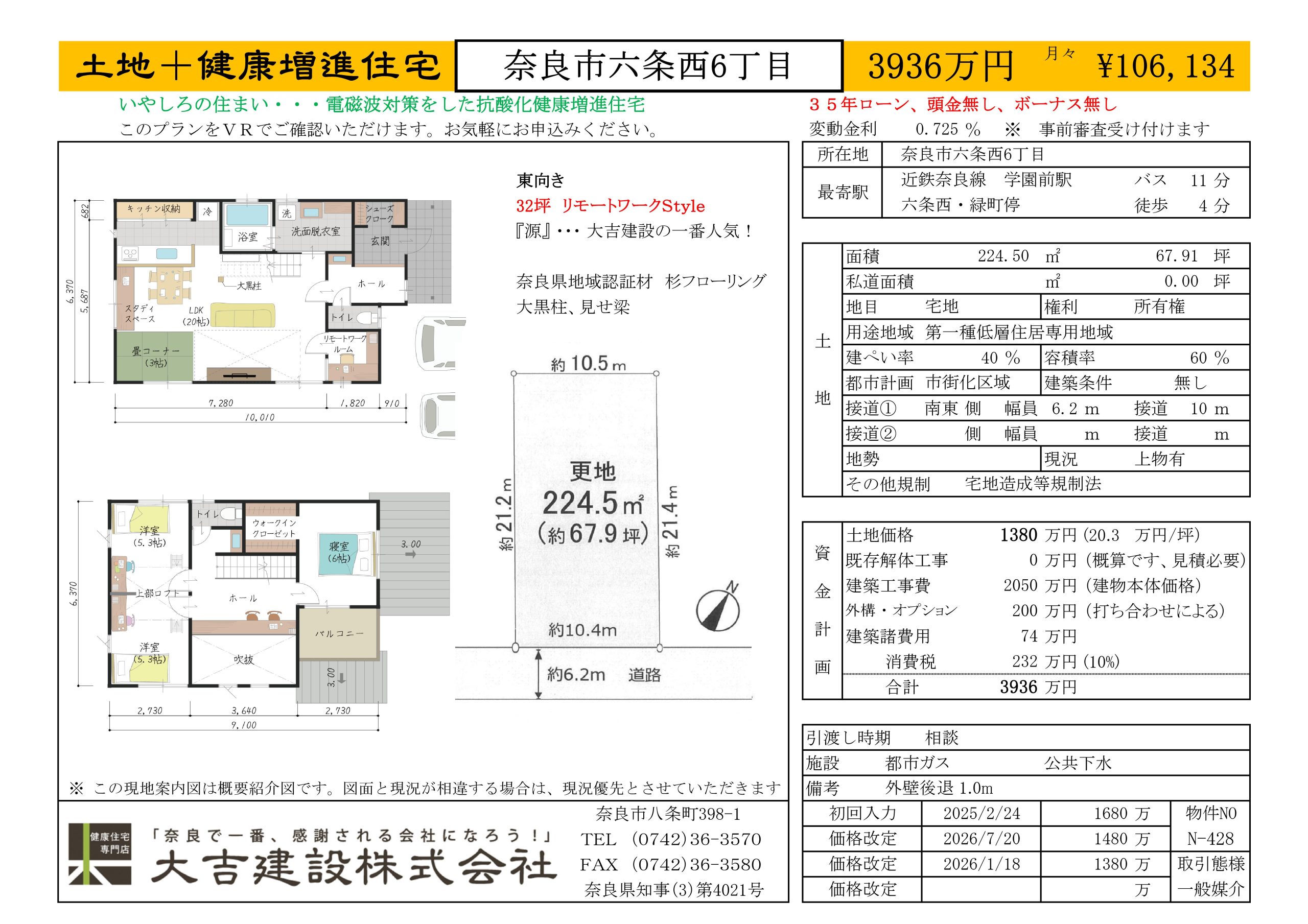 | 土地面積 | 224.50㎡ 67.91坪 | 土地価格 | 1380万円 |