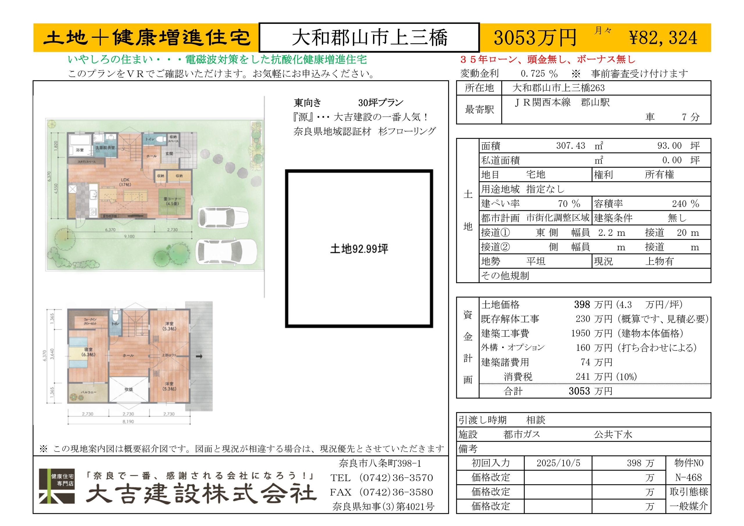 | 土地面積 | 307.43㎡ 93.00坪 | 土地価格 | 398万円 |
