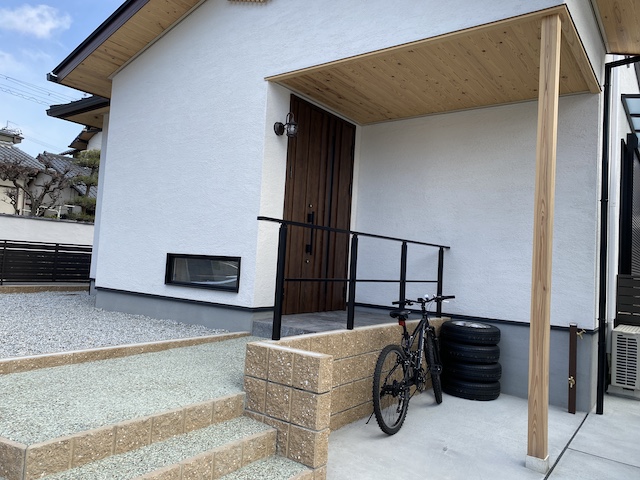 軒下は雨に濡れない自転車置き場になっています。ちょっとしたものを置くのに便利です。
